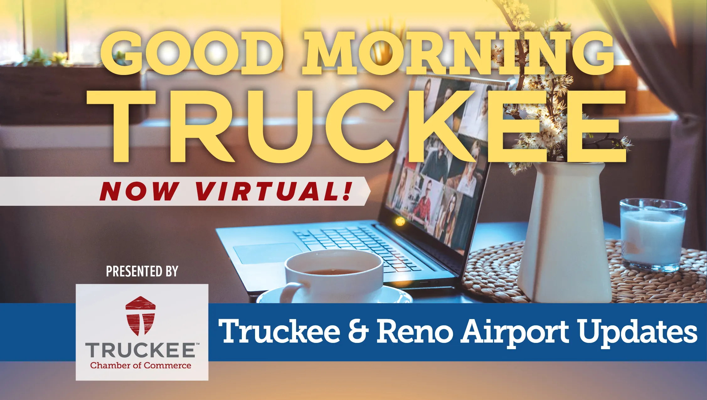 Good Morning Truckee is presented by the Truckee Chamber of Commerce in partnership with sponsors Tahoe Forest Health System; Law Offices of Porter Simon; Dickson Realty Truckee Tahoe; Tahoe Truckee Community Foundation; N|V|5; Auerbach Engineering; JK Architecture Engineering; Tahoe Truckee Media, 101.5FM Truckee Tahoe Radio; Sierra Sun; Moonshine Ink; Town of Truckee and Truckee Tahoe Airport District.
