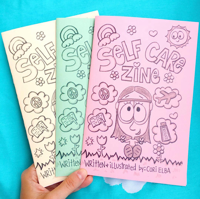Cori was raised in "hot and sweaty" South Florida around really creative people. Her dad was in a punk band and music was her life, but when she was younger, she saw music as her dad’s creative outlet, so she shifted toward drawing. Years later, she moved to California and started sketching, sculpting, cartooning, and creating zines (above, right). Cori has been creating art extensively for about 7 years now, having presented and sold her artwork as far away as Tokyo, Japan. Sketching in daily journals is how she processes her emotions throughout her busy life of creating art and working full-time as a flight attendant.
