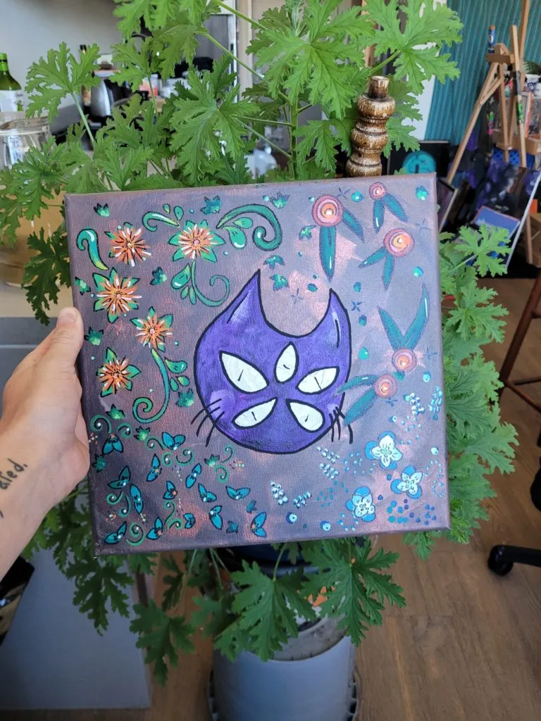 Sonia is a pen and ink artist who also dabbles in the digital realm (above left image). In addition to canvas and paper, she uses repurposed materials such as used frames, maps, and thrifted furniture to create whimsical and unique pieces. When thinking up a new idea, or just doodling and practicing technique, she is inspired by retro-fantasy folk art as well as the worlds around them.