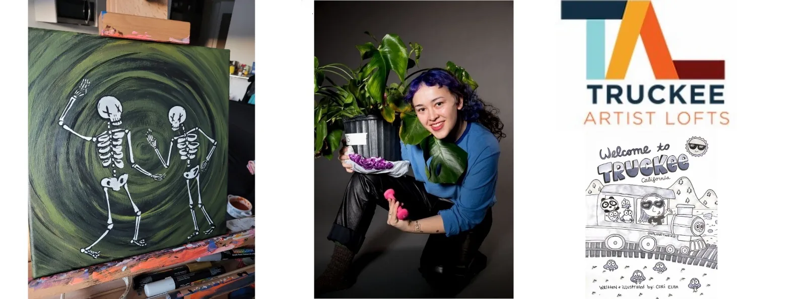 This week at Truckee Thursdays, our Truckee Big Life Artist will be three artist residents of Truckee Artist Lofts. The booth celebrates and highlights our creative community of Truckee Cultural District in collaboration with Truckee Arts Alliance and Truckee Public Arts Commission (TPAC). Stop by the booth and meet artists Sonia Breuch, Ella de Buck, and Cori Elba, this Thursday, June 30.