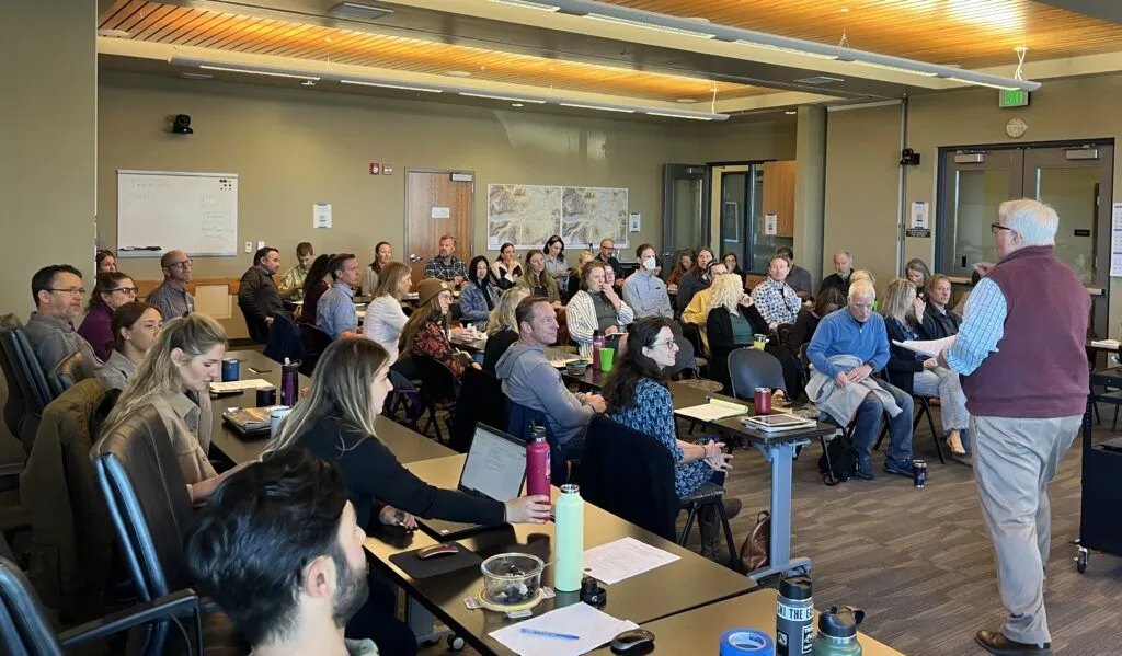 "Most other regions are not worried about wildfire, but we really are. So that had to be part of our vision because it has such a huge impact on us here," said Anna Klovsadt at a CTA meeting at the Lift Workspace, where she explained CTA's mission and vision. "That is one example of why [our approach] is so much more multi-layered than just carbon reduction."