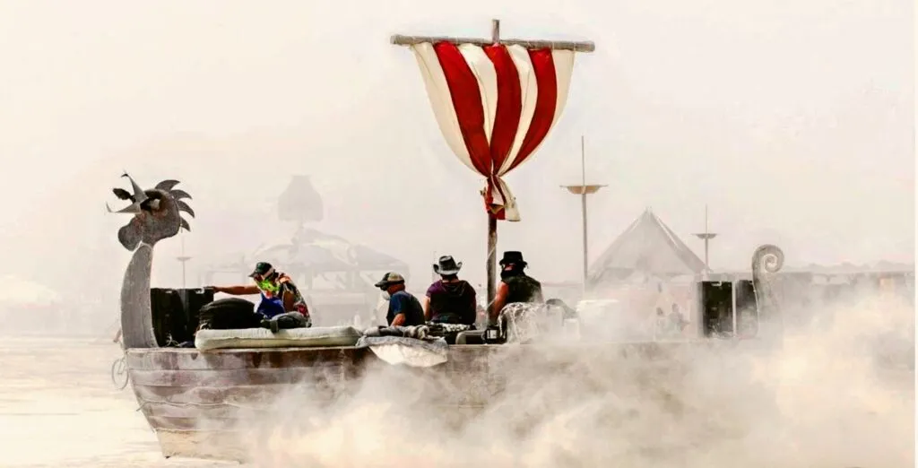 Started in 2010, the course is expanded and improved every year. It looks awesome when lit up for 24-hour bike action. They are taking 2025 off, but plan to return in 2026. The course creates features for Burners looking for a challenge, and they always have gifts for the riders, including stickers “I crashed on the Burning Man Bike Course,” for those who qualify.