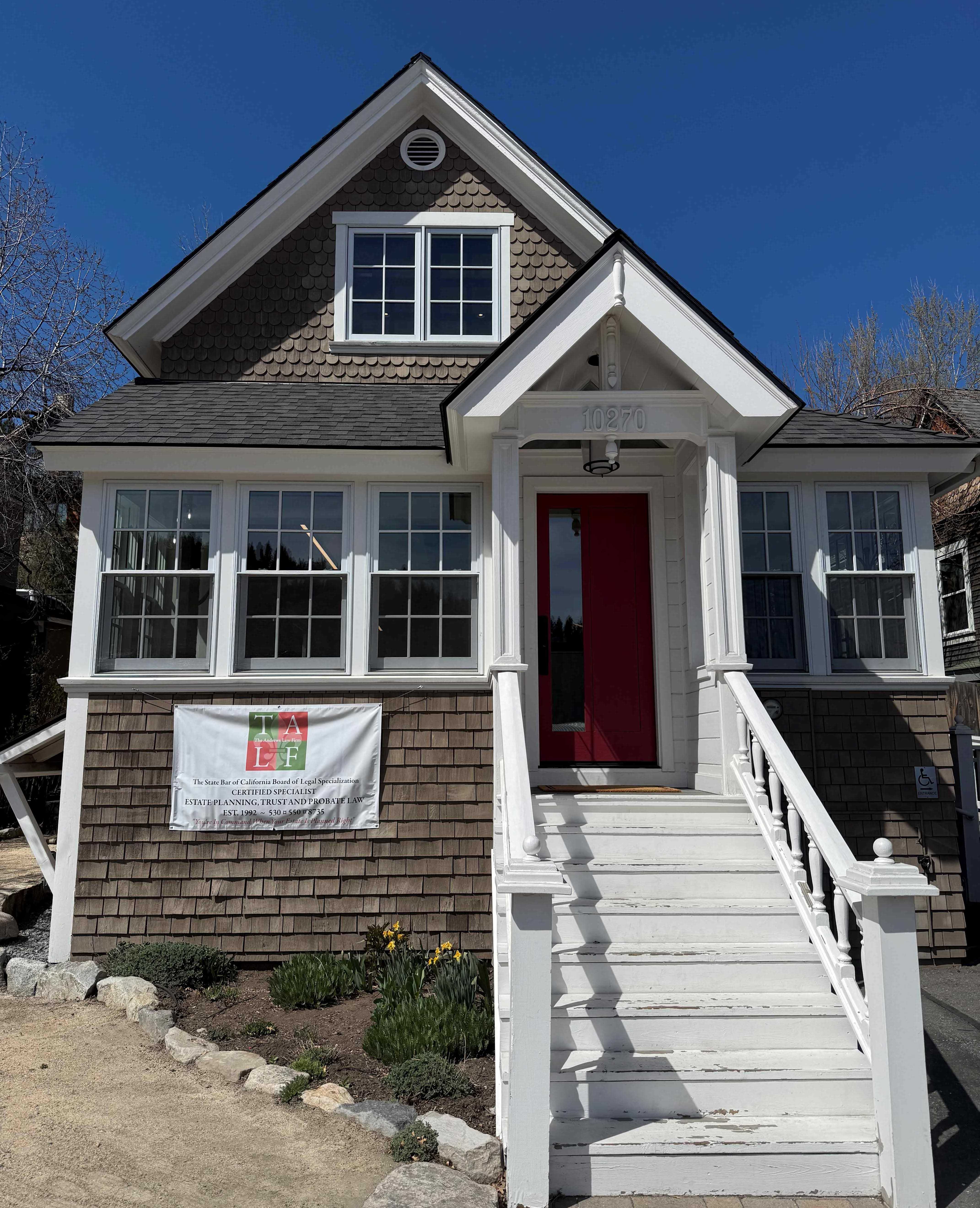 The firm recently celebrated another milestone with the purchase of a new office building in Brickelltown - downtown Truckee, at 10270 Donner Pass Road, located in a beautiful restored historic building that reflects the character and heritage of the community. They have one office space available for rent in this terrific downtown location. Please reach out to them at paralegal@theandrewslawfirm.net for more information.