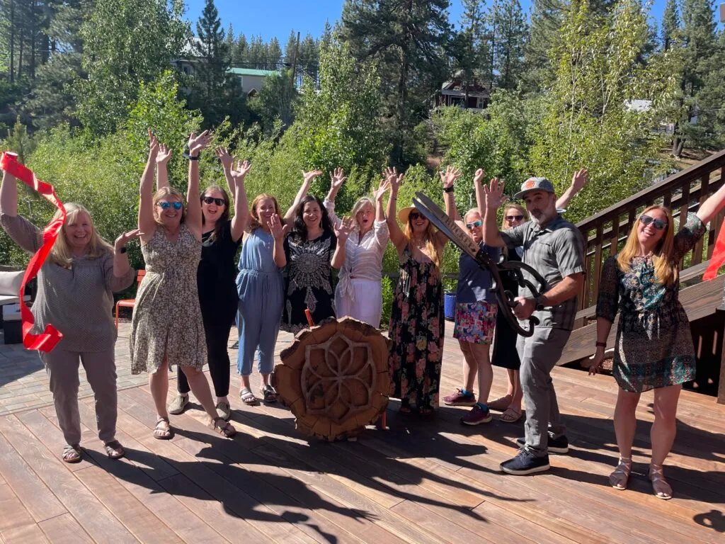 Mountain Lotus Yoga is thrilled to announce the grand opening of its brand-new outdoor yoga deck and beautifully renovated creekside dining area, just in time for the sunny days of summer in downtown Truckee. To commemorate this exciting new chapter, Mountain Lotus Yoga owner Scott Fitzmorris, General Manager Pia Nunez-Helvey, Events & Bookings Manager Kellee Rich, Director of Marketing Linda Gardner, and Studio Manager Meghan Ruiz celebrated with an official ribbon cutting and red envelope ceremony attended by officials from the Town of Truckee and Truckee Chamber of Commerce staff and board members.