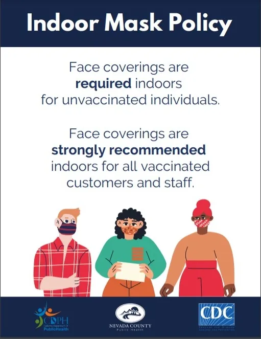 While cases continue to surge and until vaccination rates have increased in Nevada County, it is strongly recommended that vaccinated residents wear masks in indoor public settings such as a grocery store or restaurant.